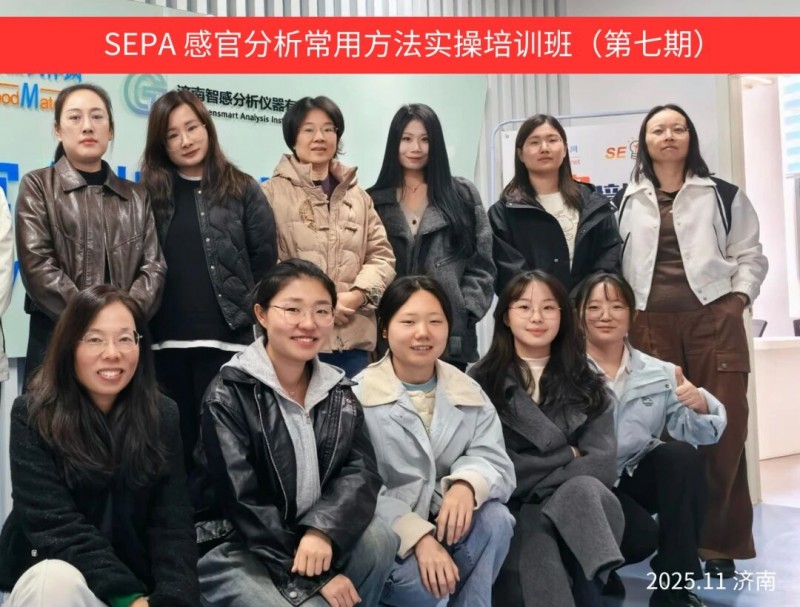 2025年11月11-12日,由食品伙伴網(wǎng)主辦的SEPA感官分析常用方法實操培訓班(第七期)在濟南感官分析研究中心圓滿結(jié)班。來自浙江柏客健實業(yè)有限公司、天津頂益食品有限公司、愛普香料集團股份有限公司等多家企事業(yè)單位學員參加了此次培訓。大家齊聚泉城濟南,共同進行感官充電!