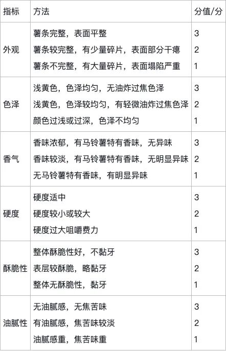 真空油炸馬鈴薯薯條因其風味獨特、食用便利在全球休閑食品市場占據重要地位。其外觀、營養和質構等品質特性,受原料品種、加工工藝及包裝儲存條件等多因素影響。營養品質是油炸薯條品質綜合評價的核心屬性之一,已有較多研究針對不同馬鈴薯原料品種,通過測定其加工薯條水分質量分數、油脂質量分數、蛋白質含量、維生素含量及潛在危害物丙烯酰胺含量等指標,結合統計學方法比較分析,篩選加工適應性更優的馬鈴薯品種。薯條色澤和質構特性是影響消費者接受度的關鍵指標,傳統上主要依賴感官評價評定。而感官評價易受評價者個體偏好影響,難以建立普適性客觀標準。因此,基于儀器分析的多指標客觀評價方法在食品品質領域得到廣泛應用。色差儀可量化薯條色澤為L*、a*、b*值,質構儀及質地剖面分析(texture profle analysis,TPA),可精確量化硬度、破裂力、內聚性、彈性、膠黏性和咀嚼性等關鍵質構參數。TPA模式對人類口腔咀嚼過程的模擬性良好,其測定的質構參數能有效反映薯條在口腔中的力學行為與感官體驗。